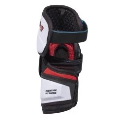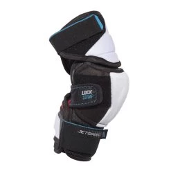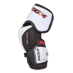 The CCM JetSpeed Control elbow pad has a three-piece design and a Y-shape middle lock strap Additionally, it has a sublimated liner on the floating articulated bicep