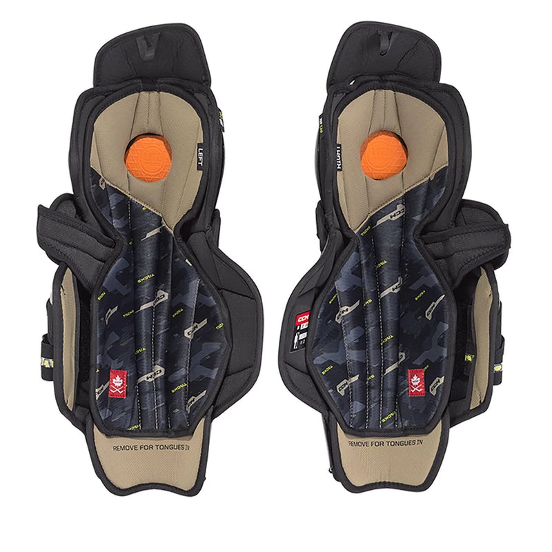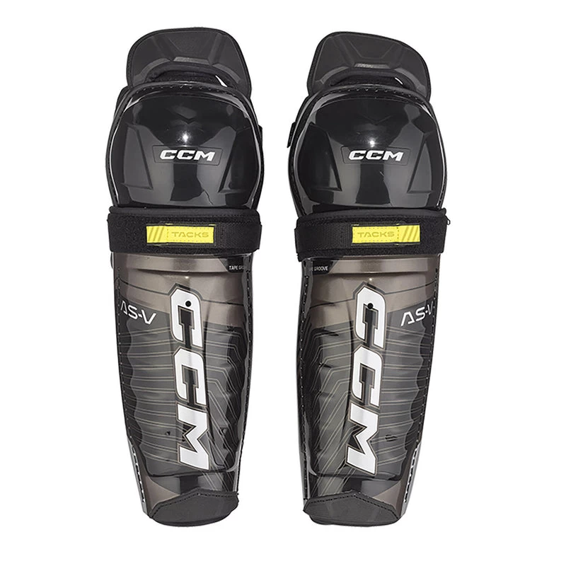 Don’t let your equipment keep you from performing at your maximum potential The CCM TACKS AS-V hockey shin guards offer a snug fit thanks to their length-adjustable dual calf strap With their anatomical shin cap coupled with reinforced D3O at the bottom, you’ll have elite-level protection from impacts and shocks