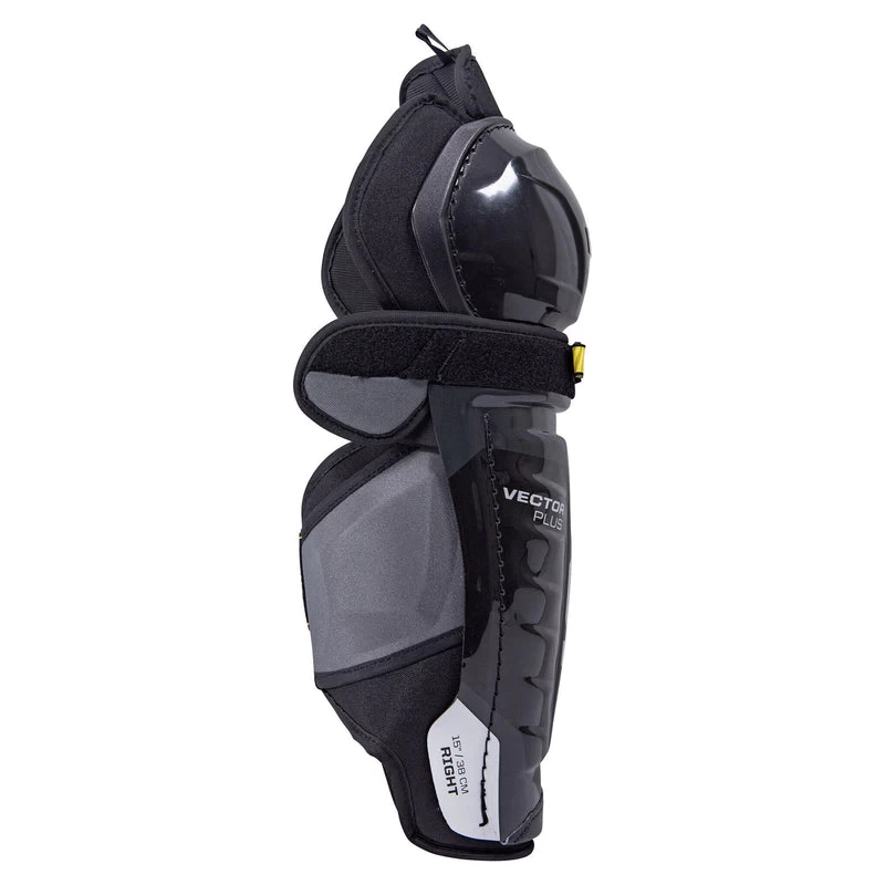 The CCM Vector Plus shin guards deliver the comfortability and protection of the Super Tacks AS-V at a cost-effective price point Our experts know that fit, protection, and performance are the key elements to be a game breaker without breaking the bank for the average player With protective upgrades such as the added knee protective bumper, and the padded hyper lock strap, you will reduce impact to the key areas of your knees With the Source Exclusive graphic like the Super Tacks AS 580 at this price point, you will be buzzing around the ice in style this season! Available only at Source for Sports!